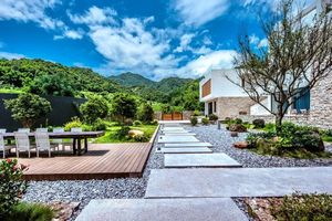 民宿有17套房间(房型有2房1厅、1房1厅大床房、大床房、双床露台房及榻榻米双床房),棋牌室、茶室、KTV、培训室、餐厅、泳池、攀岩墙、烧烤场、儿童沙池,环山徒步线(8—50公里),越野摩托体验道,越野车环山挑战道,越野跑道。