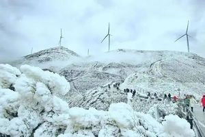 11:40 左右到达云冰山景区,购买门票乘坐景区接驳车上山,乘车时间约15分钟。(注意:门票含接驳车,如果遇上路面结冰则接驳车可能会停运,则只能徒步上山哦)游览云冰山网红打卡点壹脚跨两省标志,山顶观景台,民宿区烟雾缭绕,云冰铁索桥,云冰风车山等景点;(午餐自行解决)