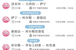 3.全程门票费用不含,涉及门票如下:赛里木湖门票及区间车,吐尔根首道门票,大西沟首道门票及区间车,罗布人村寨门票及区间车,大海道门票,(目前景区门票减免至2024年4月,具体价格以景区公示为准,景区区景车为必消约280元/人);