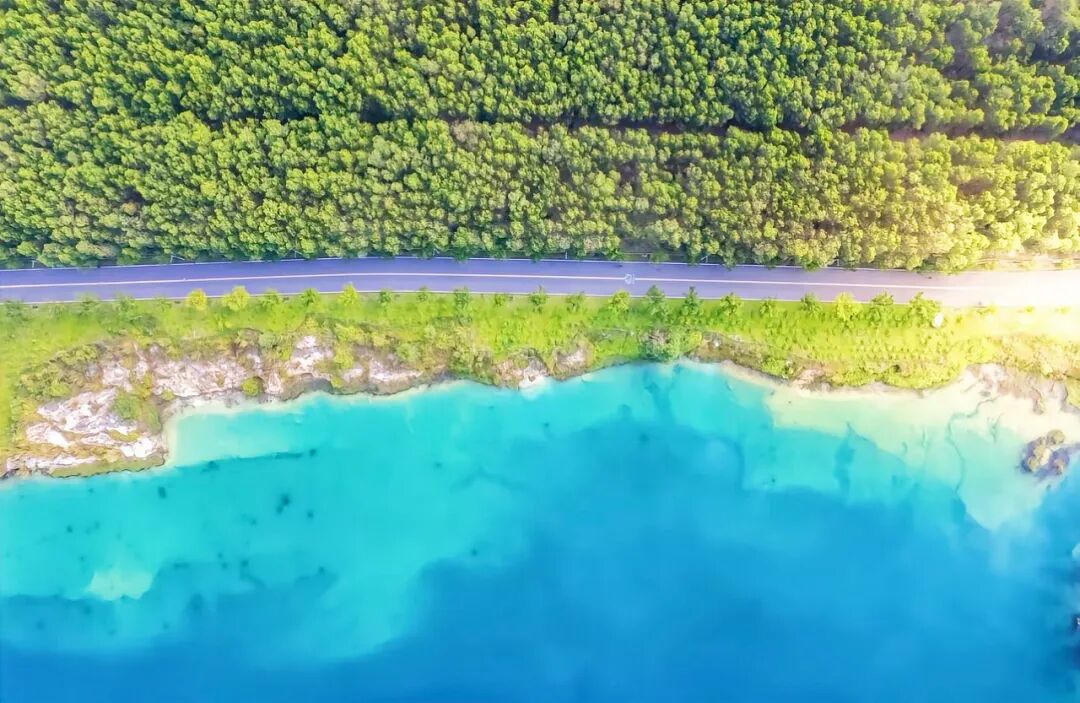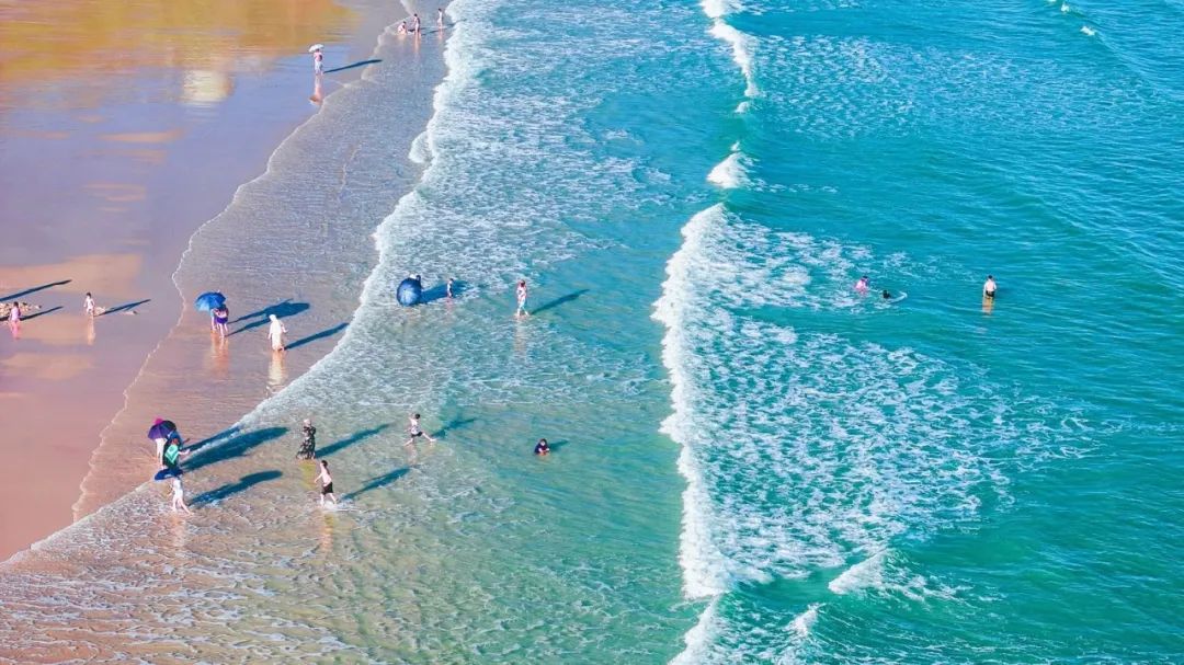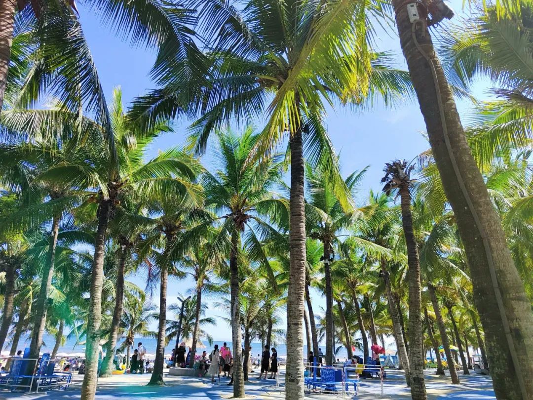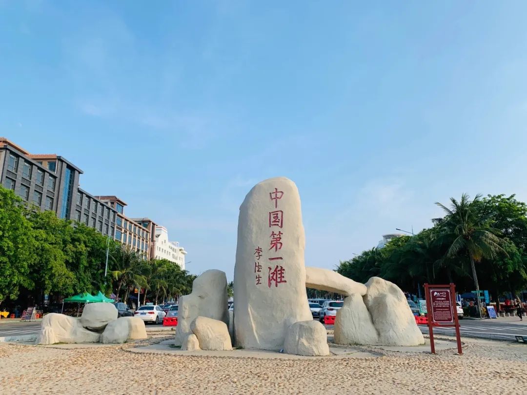 蓝天白云下,洁白的沙滩映衬着葱绿的林带,为国内少见,素有“东方夏威夷”之称。