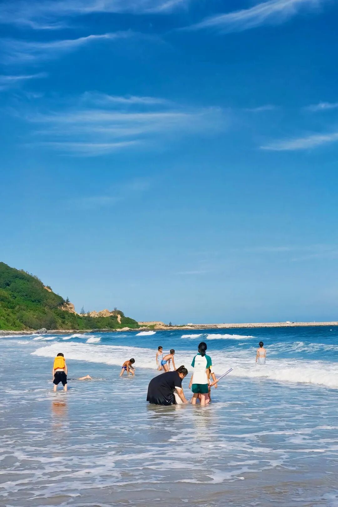 带着家人来这柔弱的细沙踩在脚下咸咸的海水拍打着脸颊听风细语,观海弄潮,别有一番风味