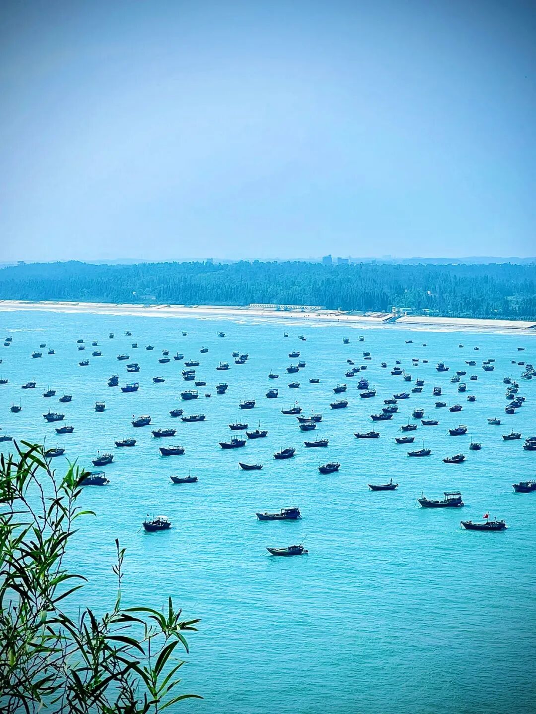 整合山被海包围着,左边望过去就是无边无际的大海右边就是停靠了上百条渔船的童子湾。