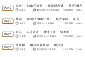 特克斯→30KM-喀拉峻全景游→220km→那拉提