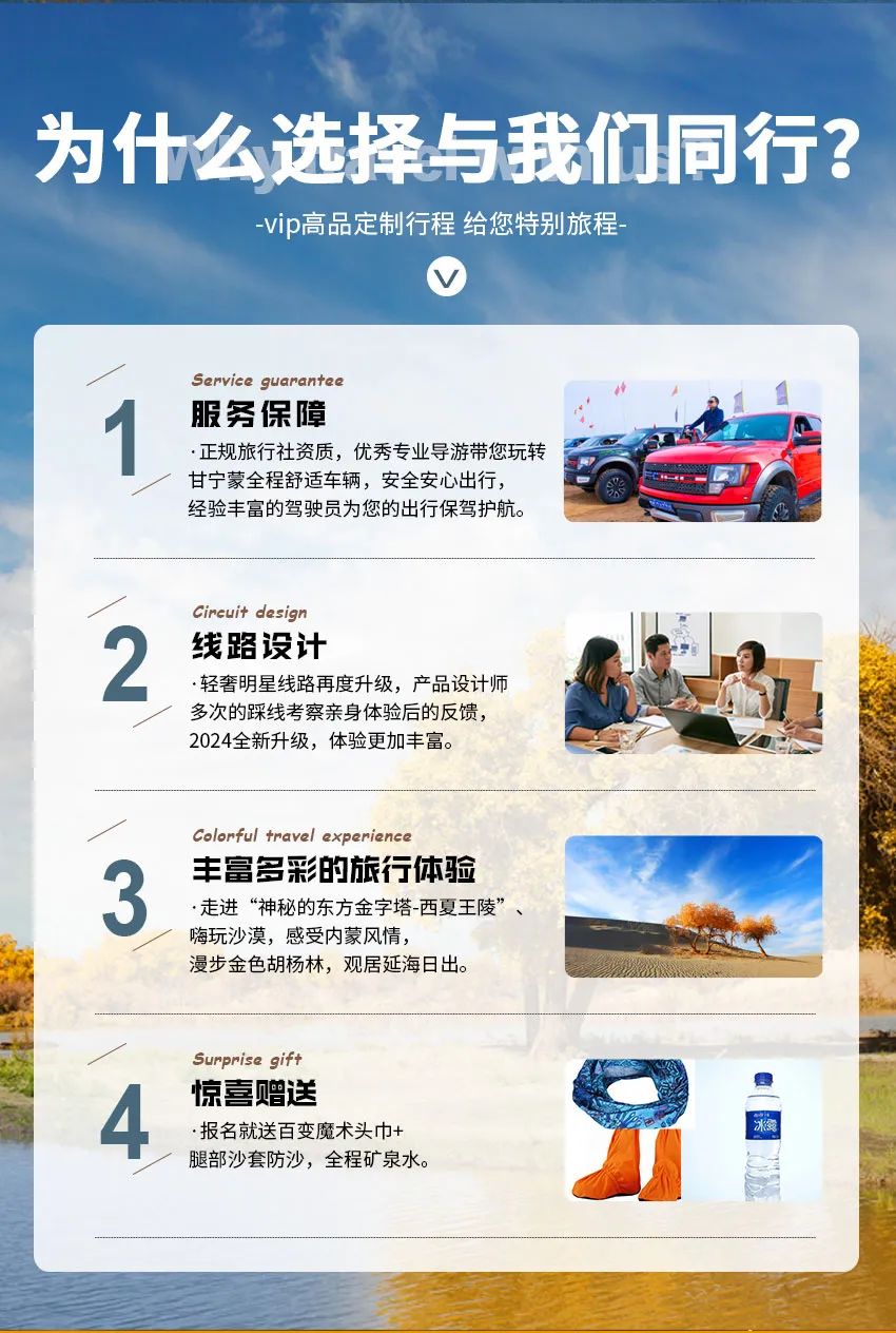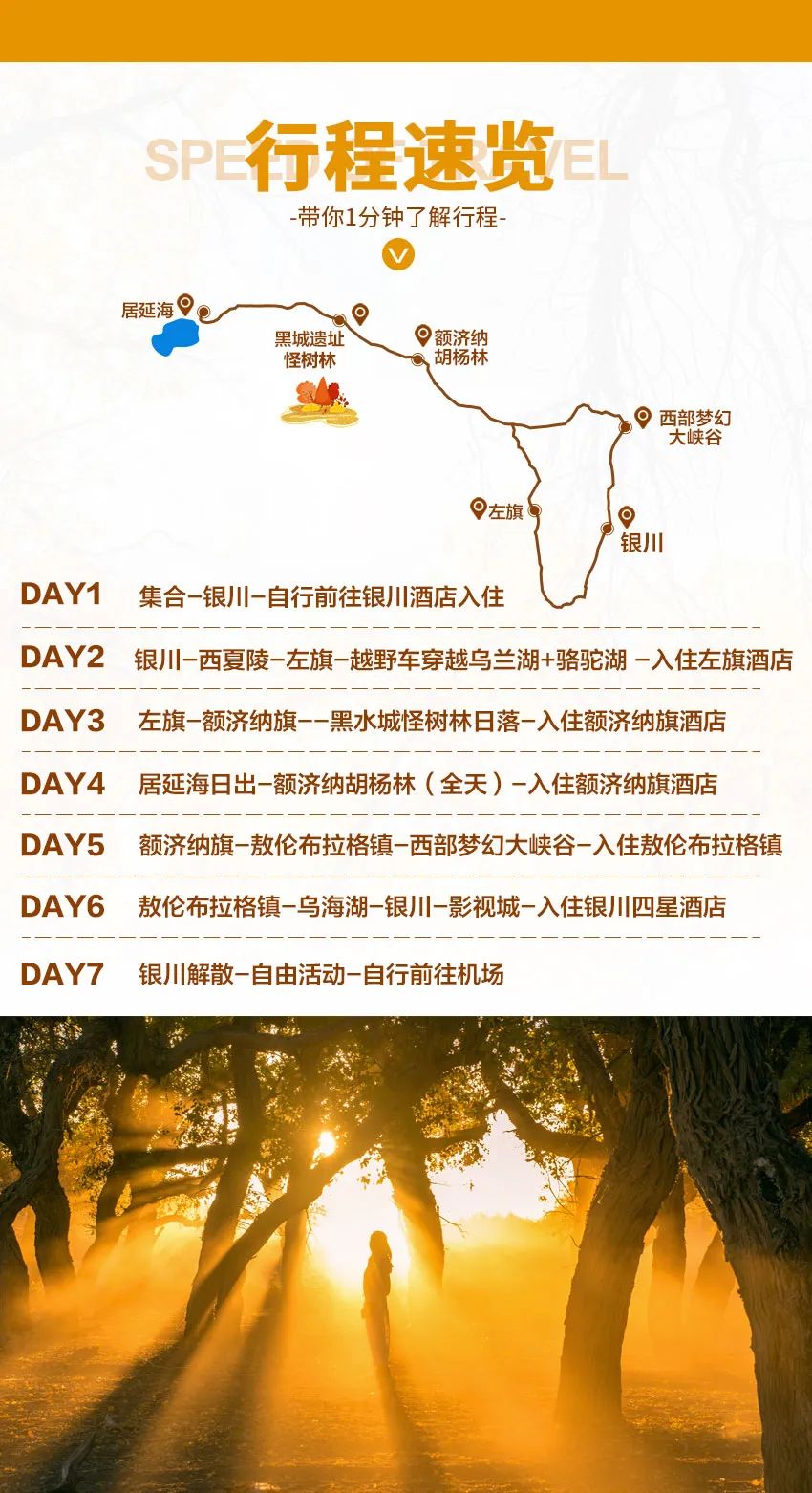 【集合地点】银川市区指定酒店,请报“嗨 玩胡杨林”+姓名拿房,酒店入住时间14:00后,提前抵达可将行李寄存在酒店前台;