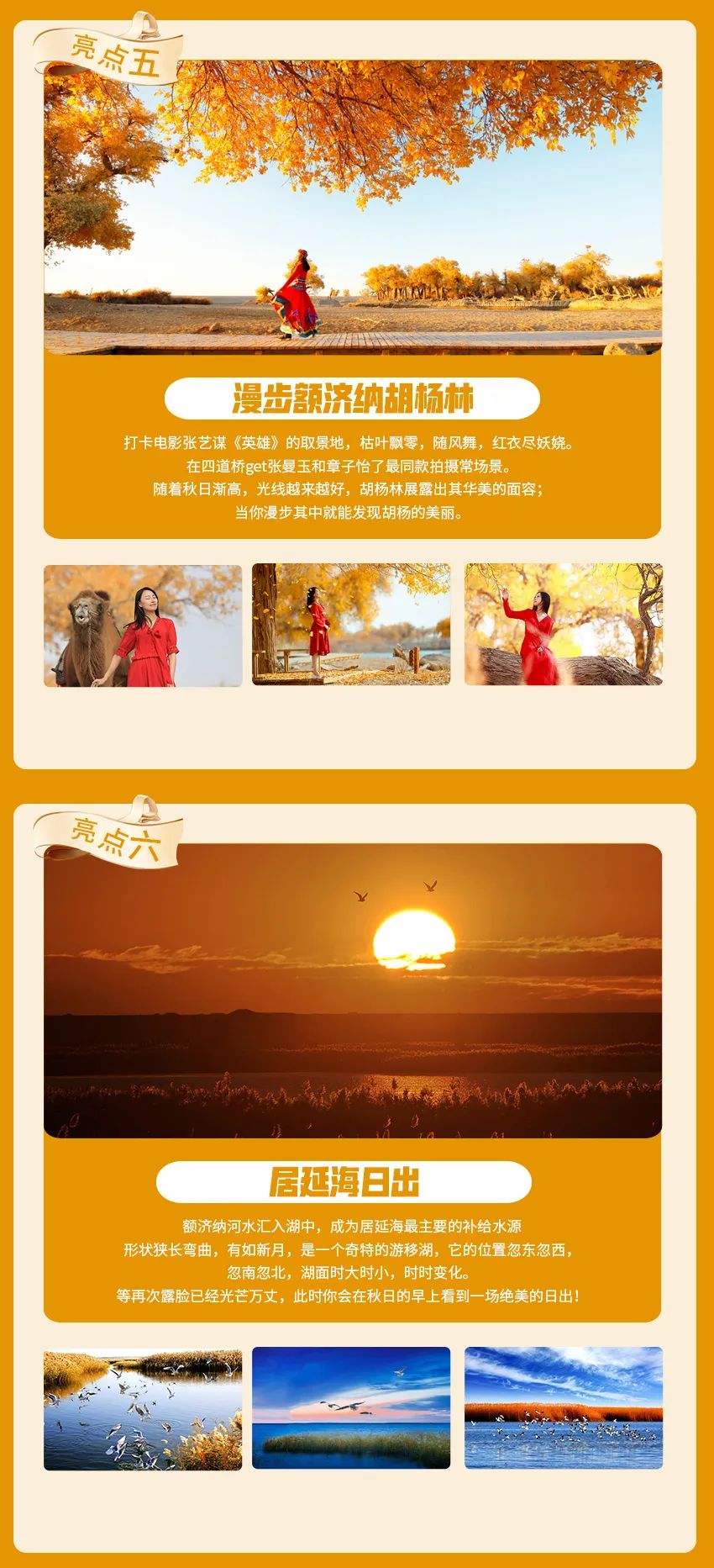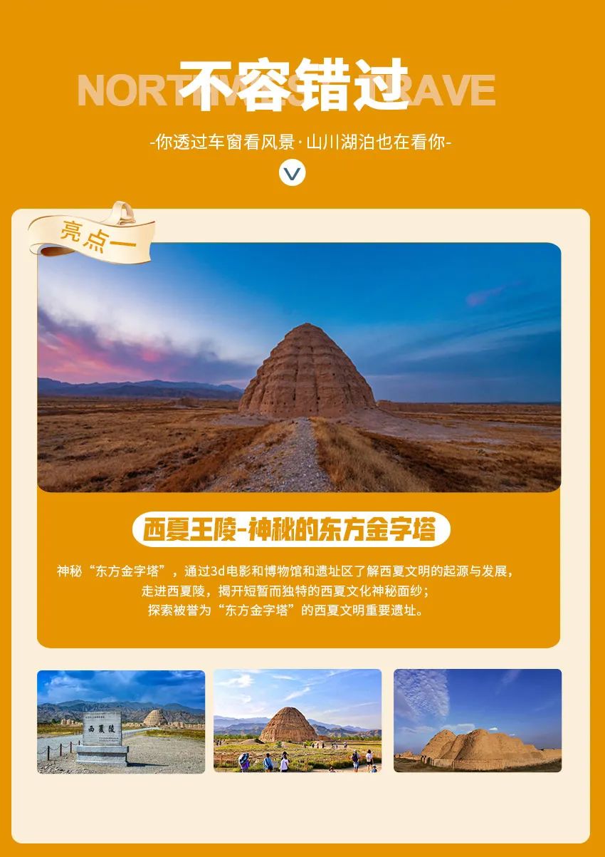 5、门票:沙漠湖泊管理费;黑城弱水怪树林门票+观光车、额济纳旗胡杨林门票+观光车;居延海门票+观光车;西部梦幻大峡谷门票; 乌海湖环湖观光游船票;西夏陵门票+电瓶车+3D/4D电影;影视城门票;