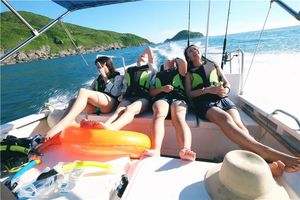 乘坐快艇离岸,在海上驰骋,颠簸得感觉整个人会飞到艇外,前往华南最火爆的浮潜圣地。