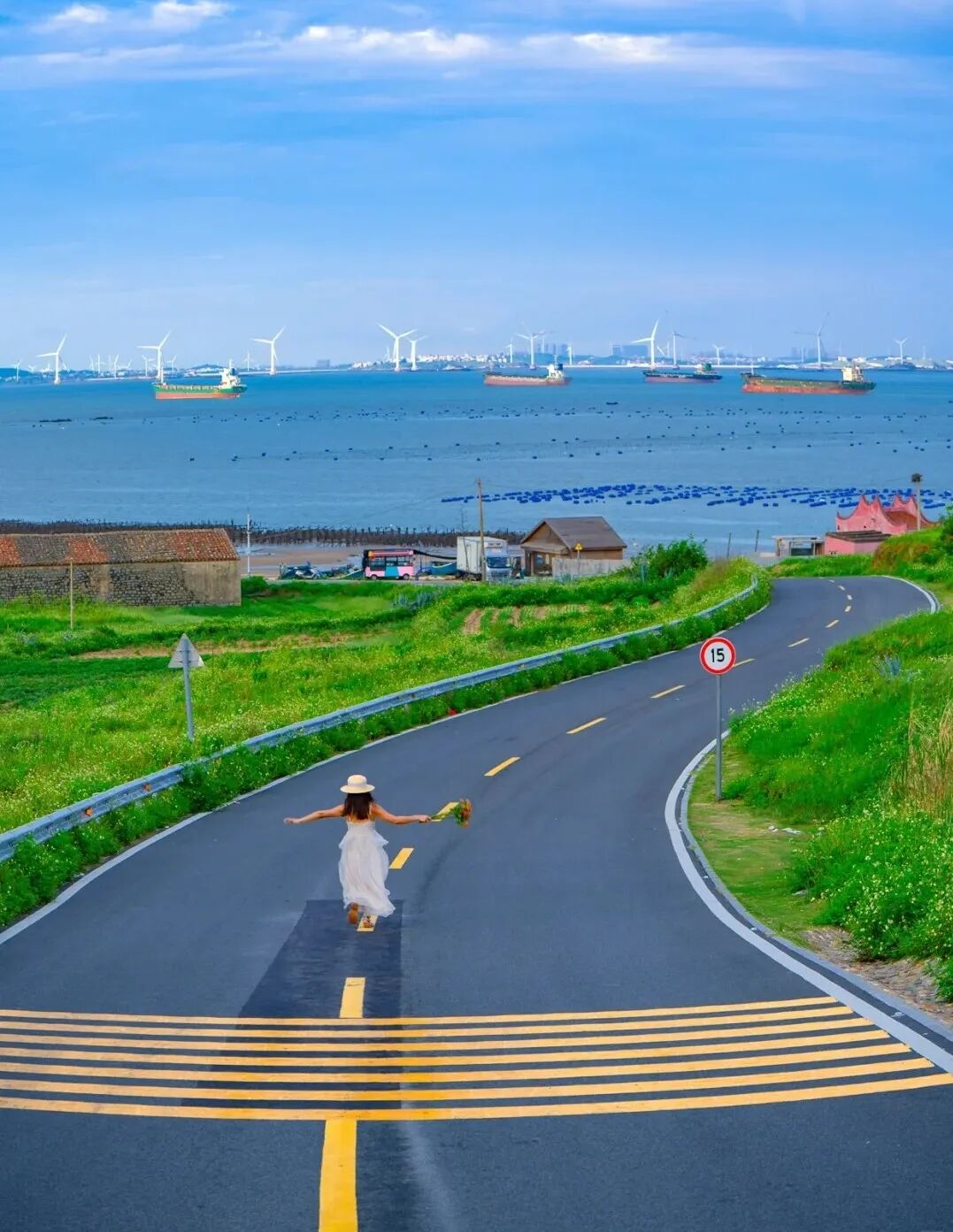 沿海环岛路:平潭环岛公路总长约200公里,其中的“君山后环线”被誉为平潭最美环岛路线。骑着小电驴飞驰在这条公路上,碧海、沙滩、风车、渔船、石厝、绿林一览无余,满满的小镰仓既视感,在斑马路上拍照YYDS!