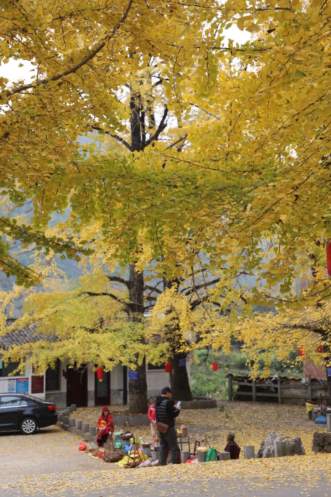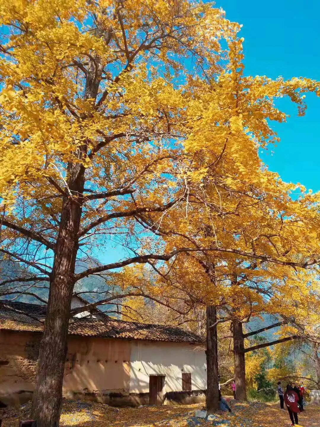 11:00到达秦家大院,可爬上楼顶或者山坡俯瞰整个村庄,可去田间摘罗汉果,可漫步这一片土砖土瓦的巷子发呆,细细品味这古韵;村口有几棵千年银杏,一阵风吹来秋叶随风飘落的诗意。。。也可以翻越一个山坡,山上松树林,枫叶林,银杏林遍布,在深秋时,这里由如是一幅油画~
