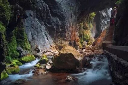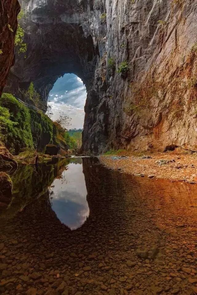 14:30-17:00到达天生桥入口,中国最大的野生天生桥,巨大的天坑,不禁感叹大自然的鬼斧神工,各种长枪短炮,拍拍拍,犹如步入《变形金刚》的拍摄地,各种大片。。。(由于这里尚未被开发,路很小,大家切勿拥挤,有些地方需要手脚并用,但是景色非常养眼)