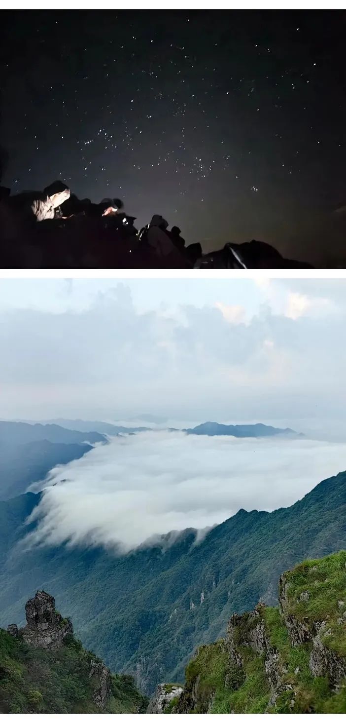 相较白天,凌晨夜爬不仅避开了夏季的酷暑,也更容易看到八面山流转的星河、日出霞光和那如流水般的云海