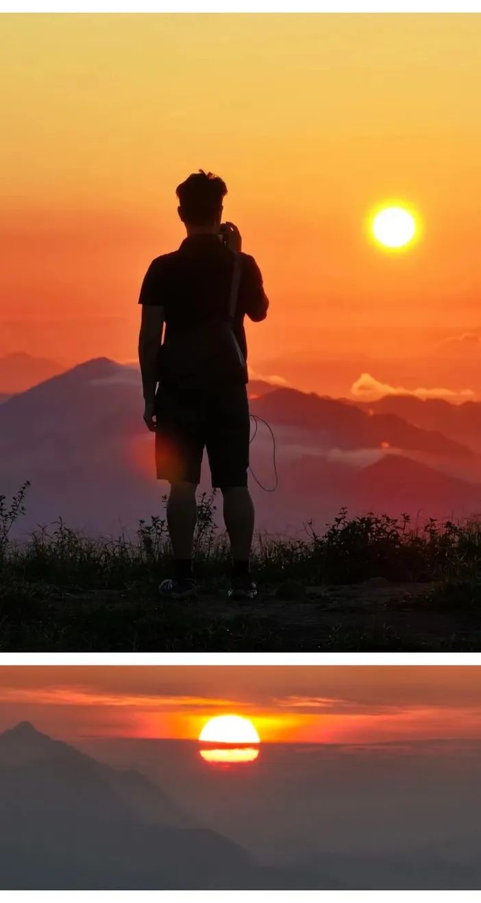 除了连绵的高山草甸还有山上浪漫的日出霞光和那如流水般的云海