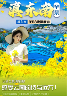 1. 【独家全景】:独家策划的经典滇东南大环线,所有精华景点,全部一网打尽,不留遗憾。前往《庆余年》《芳华》《三生三世》等影视拍摄地,以及万花筒艺术馆《东风韵》只带您在最美的季节看醉美的风景。