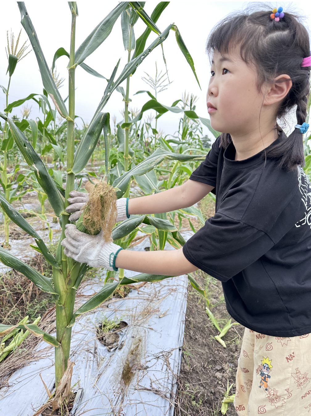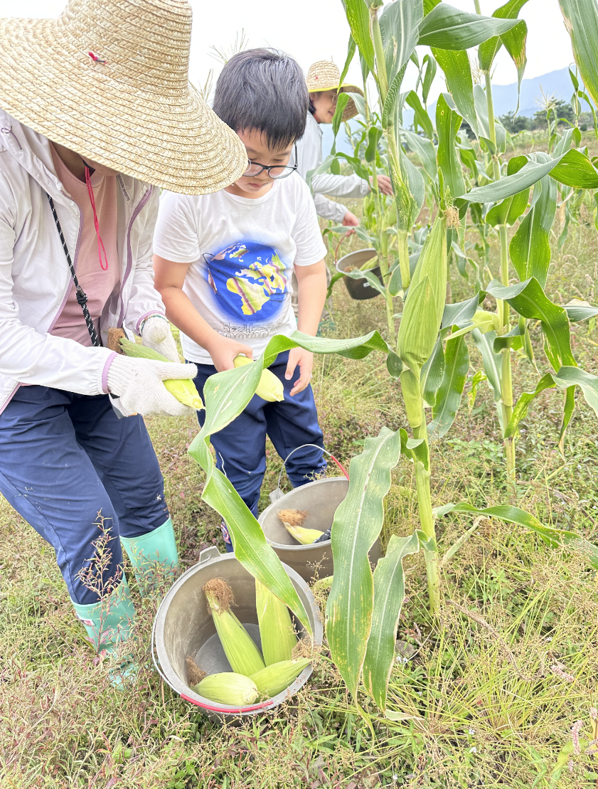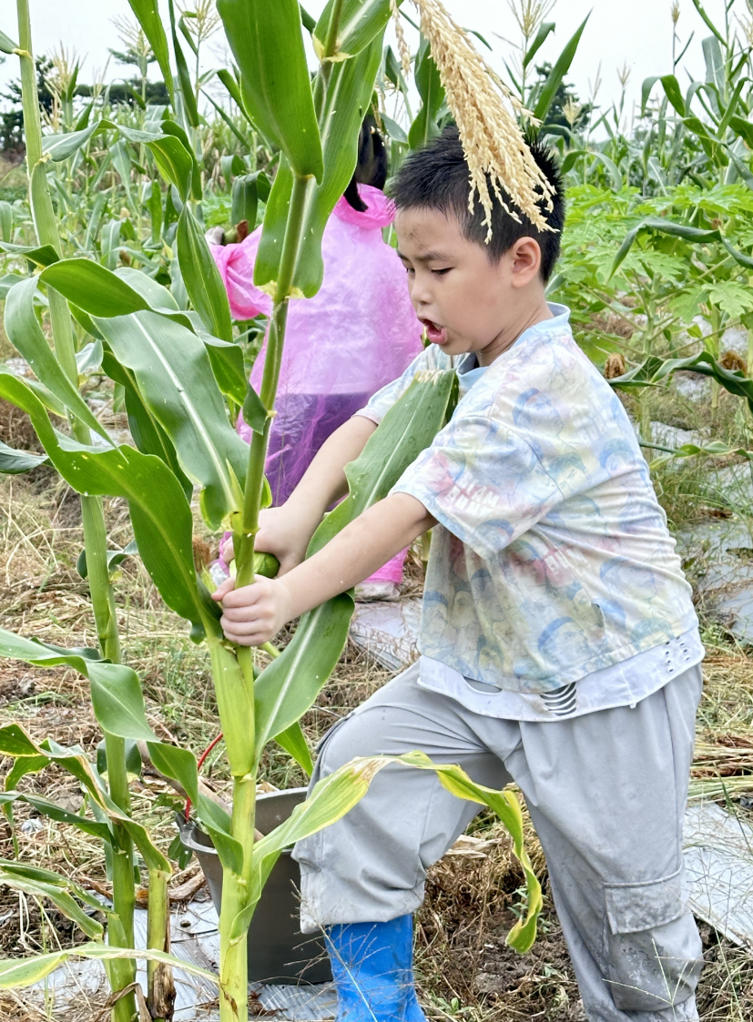 3)农耕指导解说+田里体验掰玉米(每孩5个)