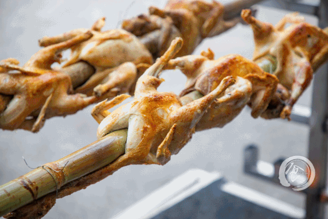 选用新鲜的甘蔗,炮制甘甜的竹杆烧鸡