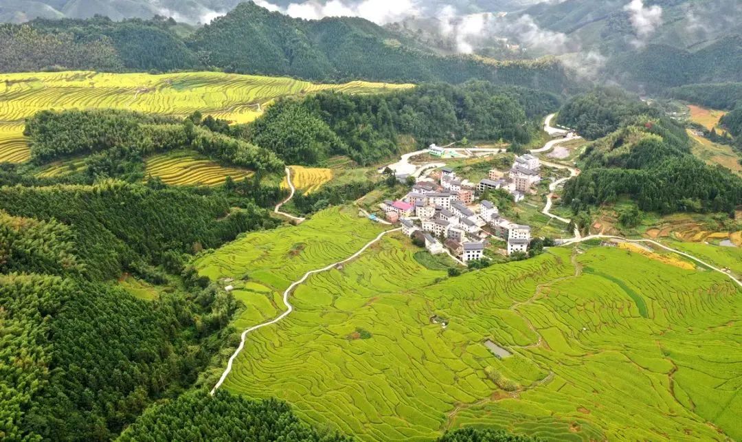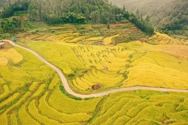 梯田沿山层叠,如美丽的群带,