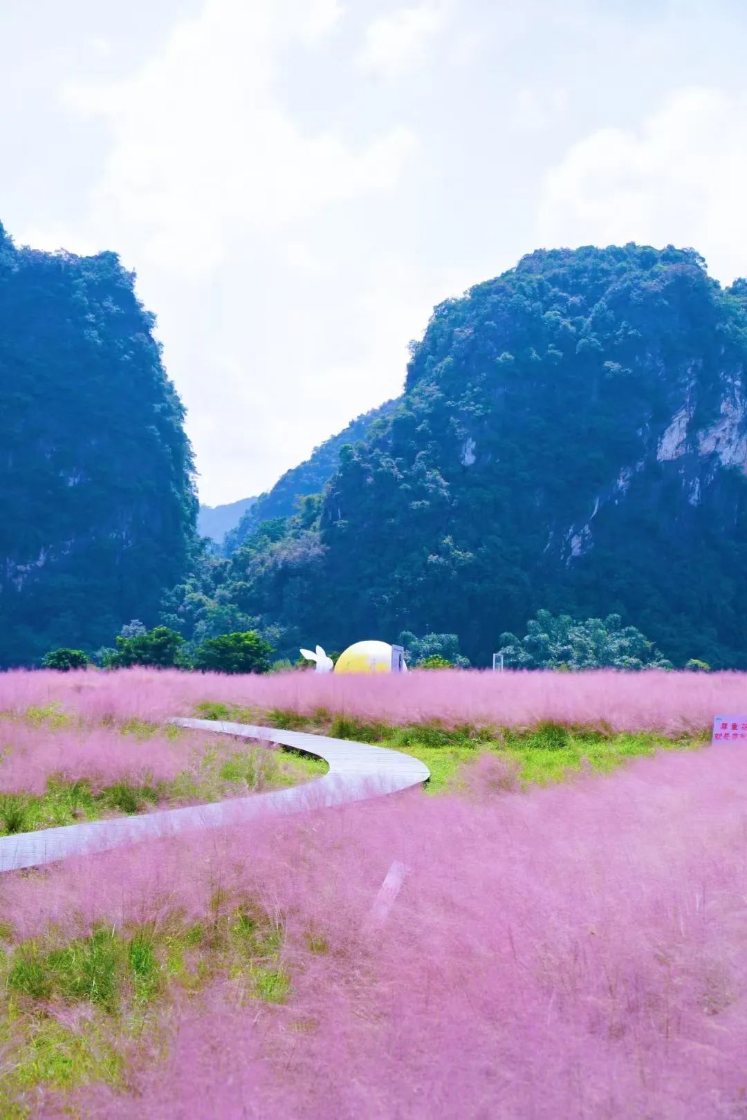 粉黛乱子草萦绕身侧,仿佛畅游在粉色云海