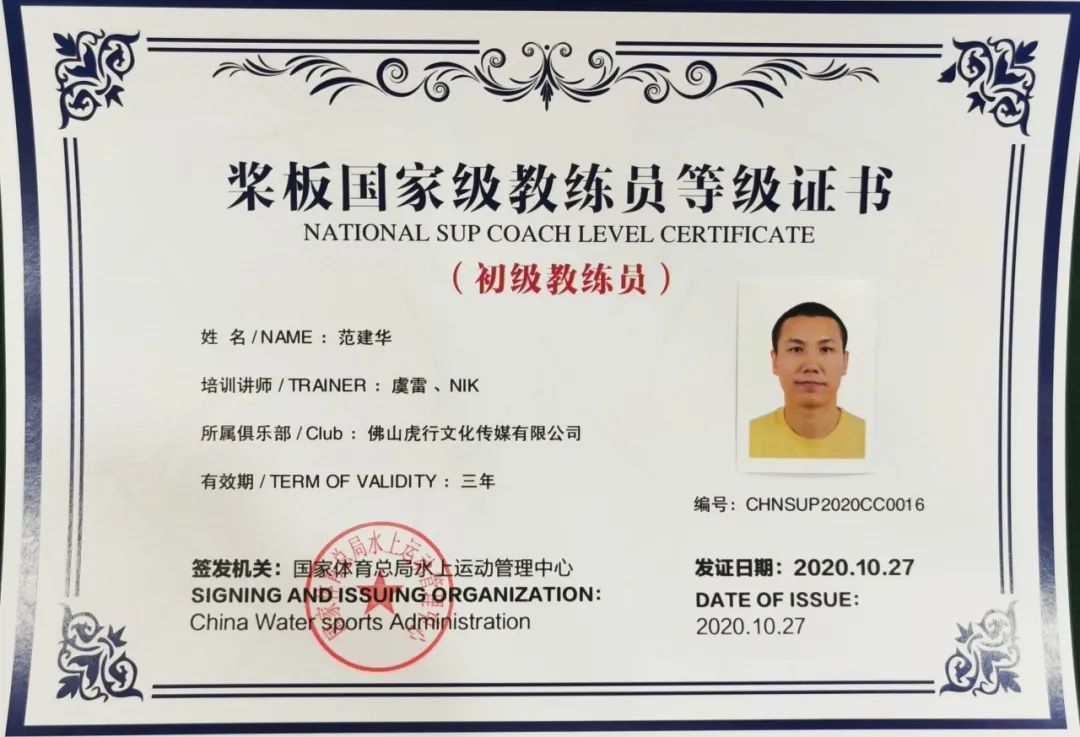 认证会员,同时也成为虎行户外运动俱乐部桨板队会员。