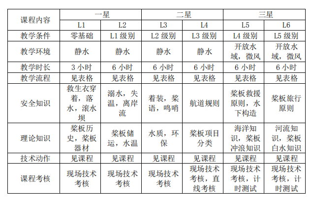 | 获取全国桨板运动水平二星L3等级证书,具备二星L3等级证书,可参加国体水上中心主办赛事的精英组或青少年比赛的最高组别赛事 | ||||