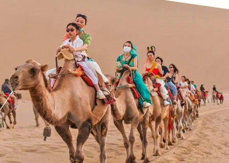 在这里我们将安排鸣沙山亲子骑骆驼体验,与孩子一起体验骑骆驼的乐趣,留下难忘的亲子回忆。
