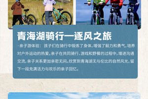 今天我们将骑行在青海湖畔,领略湖光山色,感受高原的辽阔与壮美。与孩子一起完成骑行挑战,锻炼意志,增进感情。和孩子一起制作风筝涂鸦,来一起放飞我们绘画美好的梦想。