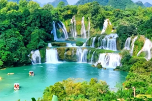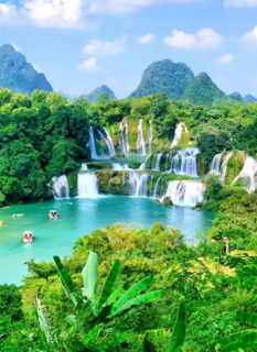 11:00 到达【德天跨国瀑布】进入景区游览亚洲第一大、世界第四大跨国瀑布,瀑布由中国的德天瀑布和越南板约瀑布相连构成,横跨中越两国边境