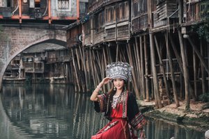 14:30 走在进芙蓉古镇,看两旁的土家吊脚楼,逛逛2000年历史的古镇,有兴趣的小伙伴可以租一套特色苗族服饰(费用自愿自理,如需要旅拍的可以提前在网上预约。)