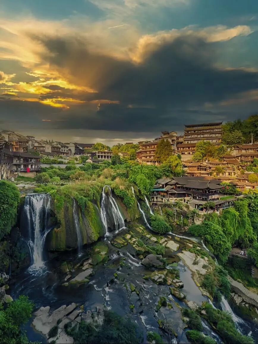 一个挂在瀑布上的千年古镇
