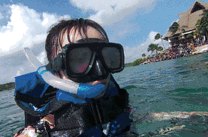 罩带上,睁大眼睛就能看见美妙的海底世界啦。近视患者也没有关系,那边有有度数的面罩。下水前工作人员会去雾,密封性非常好,不用担心进水问题。