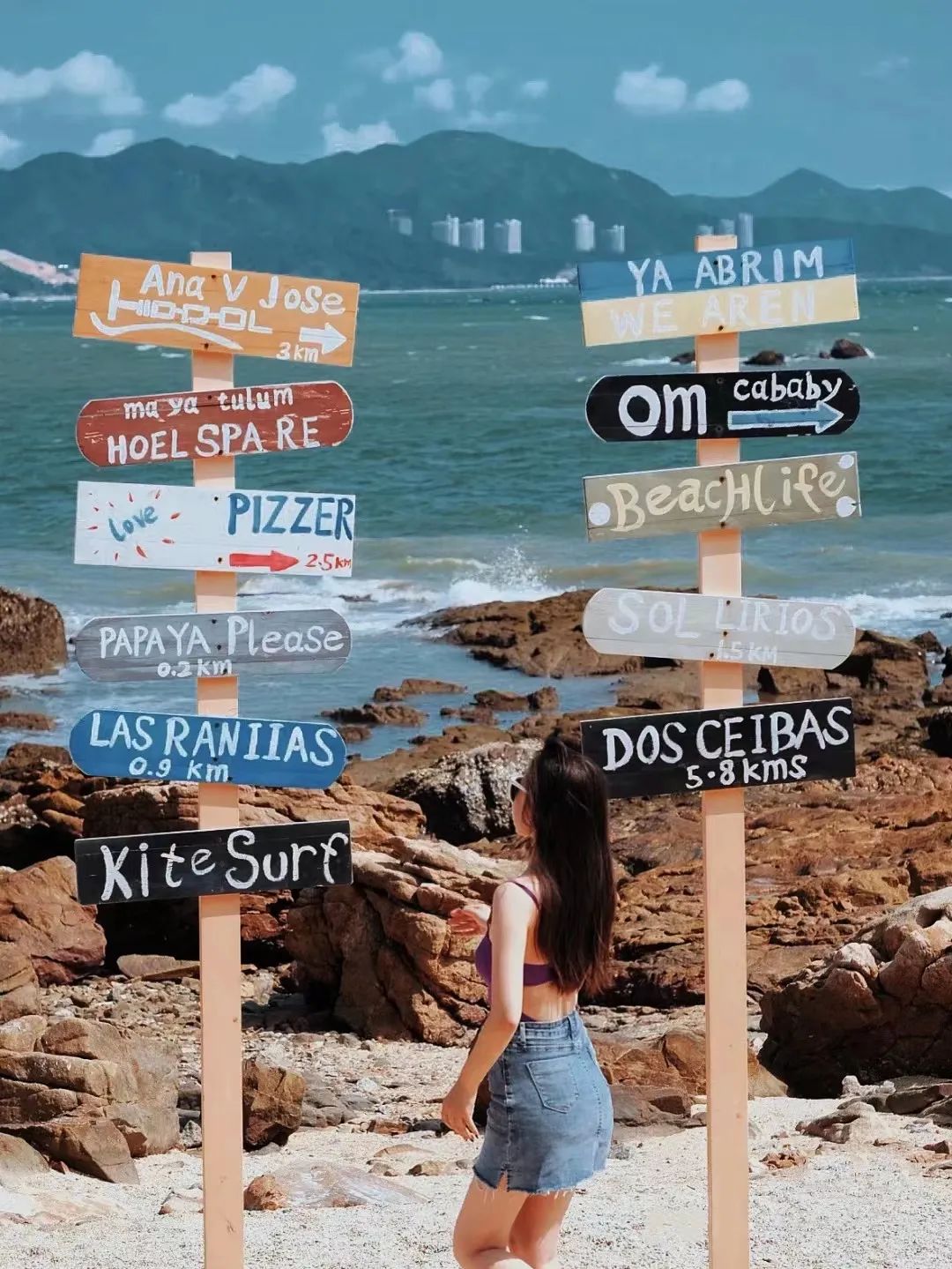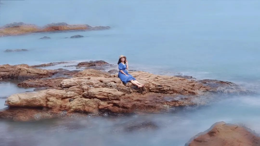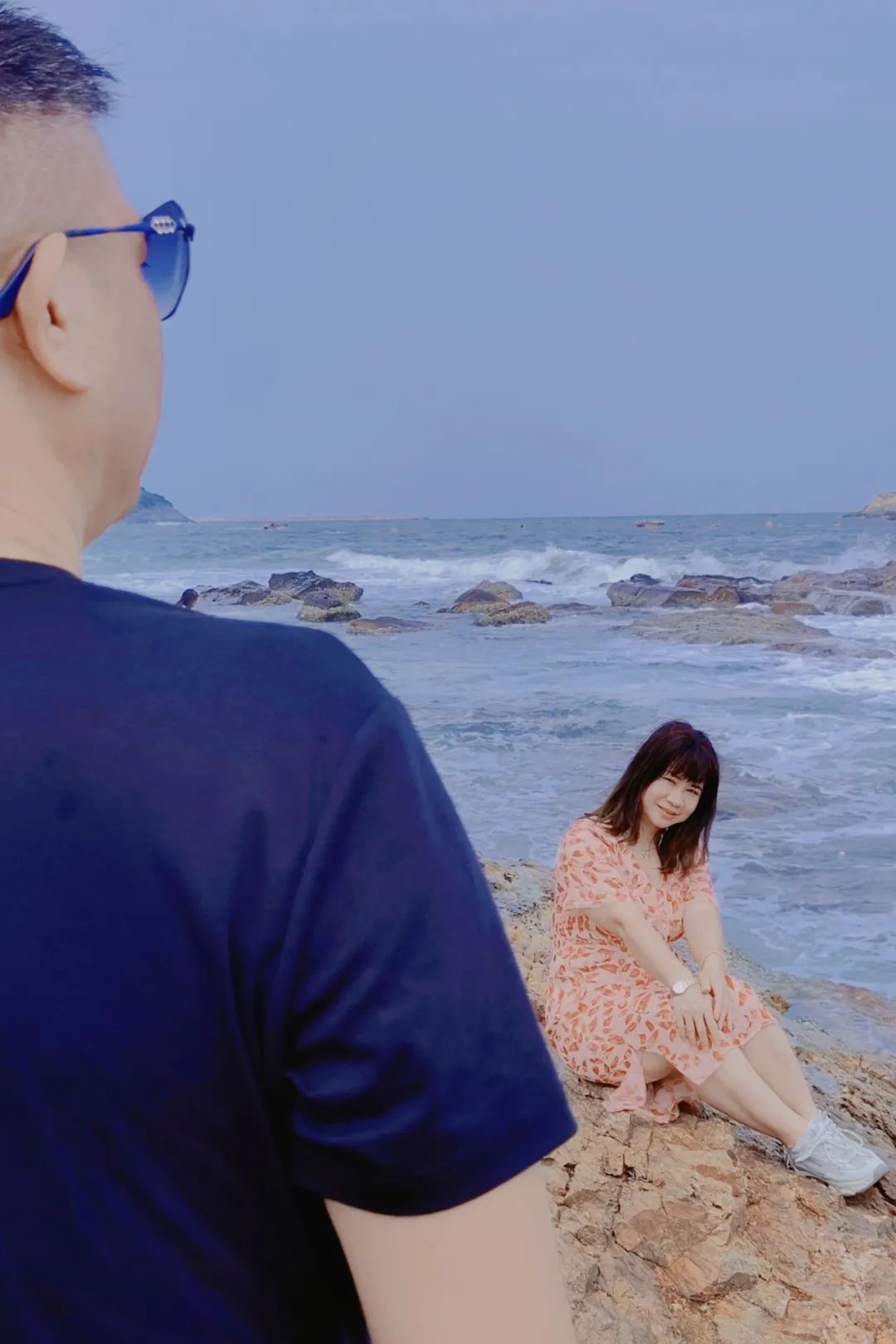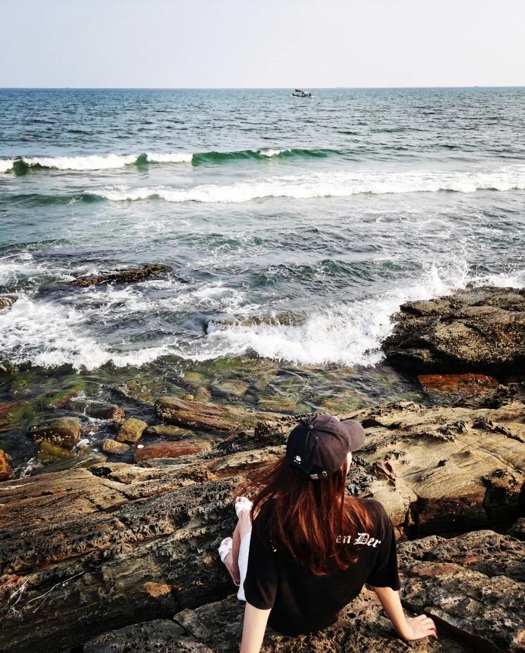 由于礁石是黑色的,海滩色调偏暗,建议穿饱和度高些的衣服拍照会很好看!