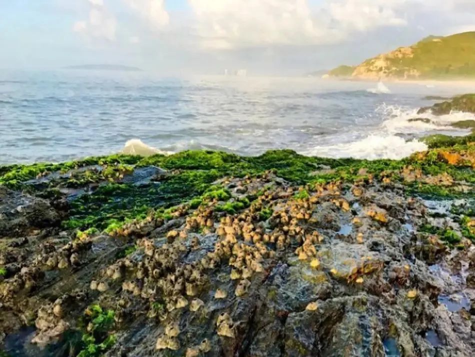 这个由于未经开发,海货非常多,在礁石边就很容易弄到一些石鳖、将军帽、海虹、生蚝、牛角螺、猫眼螺、八爪螺、佛手、沙白、花甲、青口、猪仔螺、苦螺、螃蟹、藤壶等等。