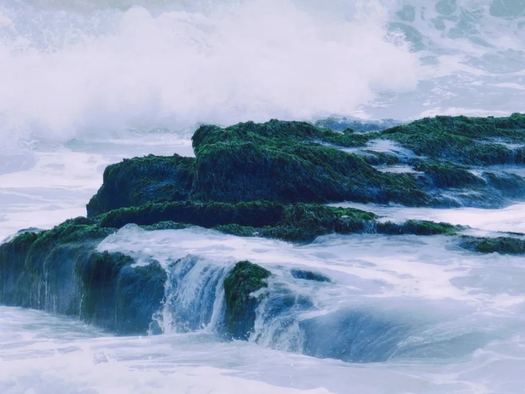 蓝色大海与黑色礁石的梦幻结合,带你领略独特的黑色礁石,欣赏大海的蓝与礁石的黑梦幻叠加。
