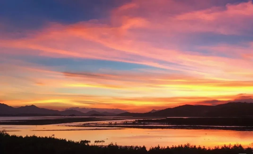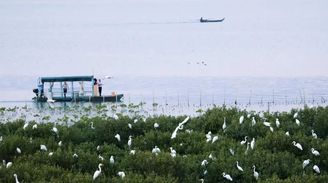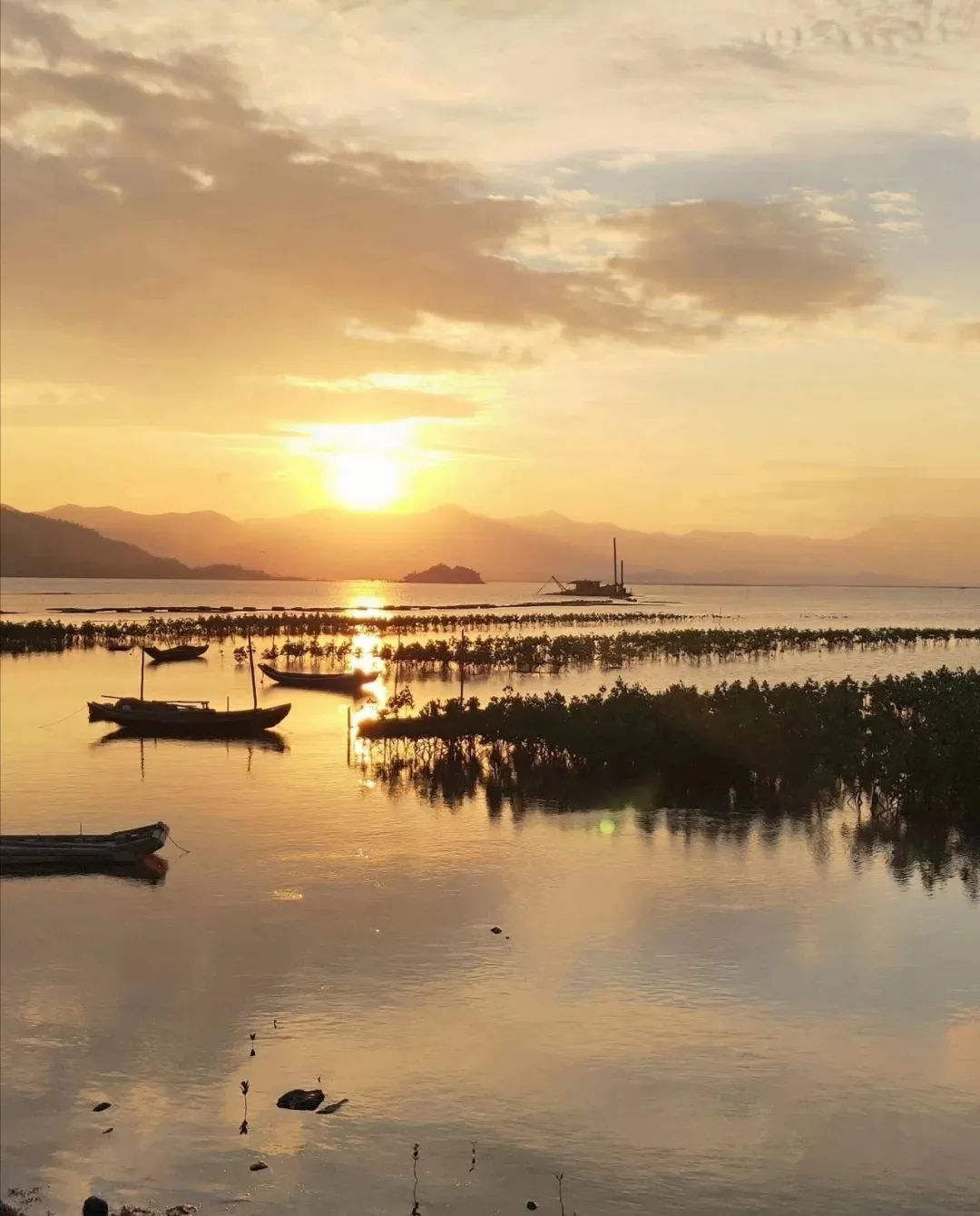 这里有大片的海滩红树林,可以乘小船探秘红树林,傍晚来这里可以看到大群的白鹭归巢,等退潮时可以欣赏到七彩的滩涂,随手一拍一幅绝美的日落大片就有了。