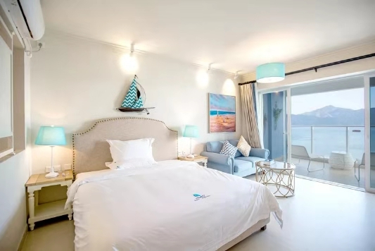 暑假旺季可能安排不到同一栋楼酒店,所以房间装饰都会有一点小区别,保证每间房间前方看海并无遮挡(正面看海)
