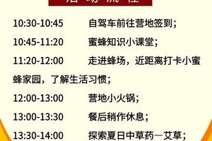 注:增加1成人加收80元/人(含营位+餐食+观蜂体验);