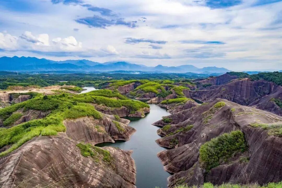 其最大的特点就是丹霞地貌周边有漂亮的水洼点缀,红岩绿水、险寨奇涧,美得一塌糊涂。