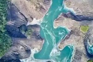 这里的山看起来就像那种弯弯曲曲的黑色蚂蝗,而且背上还带一点黄色的那种,峡谷周围还有奇特的阴阳石、天生桥土匪洞(穿坦黑坦)、等