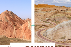 【鸣沙山】地处库木塔格沙漠的边缘,因沙动成响而出名,整个沙山是由红、黄、绿、白、黑五色极小的沙粒堆积而成的,人们称之为“五色沙”。