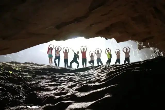 12:30 山间午餐后,然后跟随领队直接下槟榔孔到星之谷,看拍摄影片七十二层奇楼的地方,看土匪洞后,戴好头灯手电穿越迷洞,巨大的钟乳石及地下暗河,仿佛地心穿越;出洞后豁然开朗,眼前是自然奇观,天使之城,从下面穿过去走夹儿沟;真正好玩的地方开始了,大家相互帮助,在一线天的峡谷里穿行,全程需要共同协作才能完成,像电影地心历险记一样好玩!