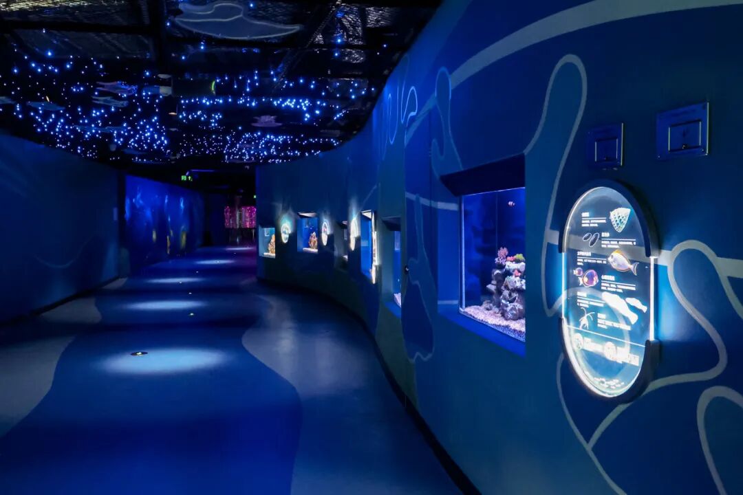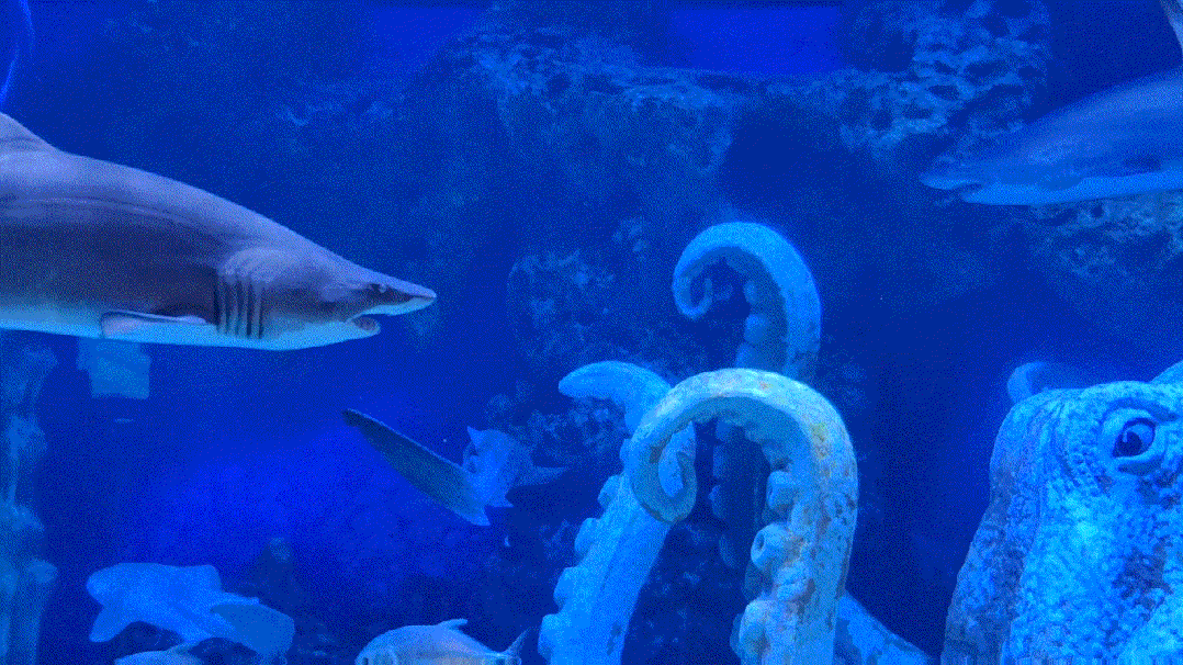 看看鲨鱼、白鲸、珊瑚区域鱼群