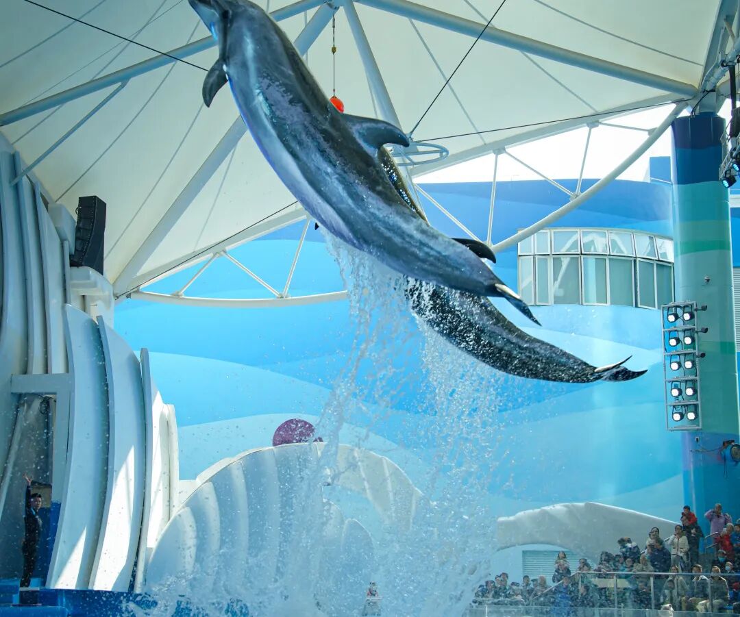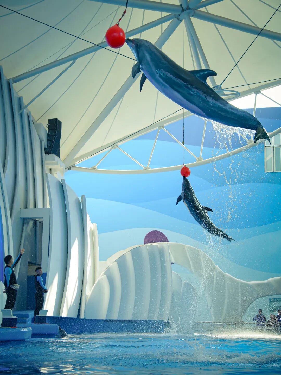 自由观看可爱的海豚行为展示,它们是海洋馆最受欢迎的明星。