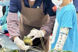 粽子飘香,通过示范,学习包粽子,耐心操作每一个步骤:折粽叶、填糯米、裹叶子、扎线等。