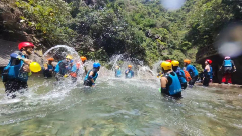 在这里你可以探索河流、峡谷和其他通常被认为无法进入的自然区域,在山风和水珠的拍打中,顺着湍急的溪水一头“滑”进清澈的深潭,疾驰而下感受山谷里清爽!从两米左右的崖口,一跃而下,在清澈的翠绿深潭水激起一片劲浪,感受心跳加速的快感!在清溪里游泳,游过清澈见底的山泉水,让清凉浸透全身!在这里,你可以享受到充满动感的溪降之旅,感受大自然带来的最凉爽体验!
