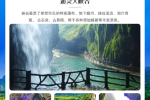 国家4A级旅游风景区【通灵大峡谷】(车程1小时);抵达景区停车场后,安排游客有序排队测量体温后徒步游览大峡谷景区(游览时间约2.5小时)。峡谷荟萃了举世罕见的特高瀑布、地下暗河、峡谷溪流、洞穴奇观、古石垒、古悬棺、两千多种原始植被等丰富景观。游玩峡谷可以漫步在秀美的山水之间,观赏溶洞的奇幻美景,仰叹亚洲单级落差高达188.6米的通灵大瀑布以及丰富的蓝衣壮民俗文化更有壮家阿妹原生态的山歌响彻峡谷!也可自费换点游览古龙山景区。