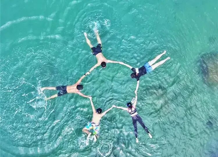 黛绿色的海水令人沉醉,潜入水中便能近距离观赏色彩艳丽的鱼群、珊瑚,说不定还能捡上几个海胆~