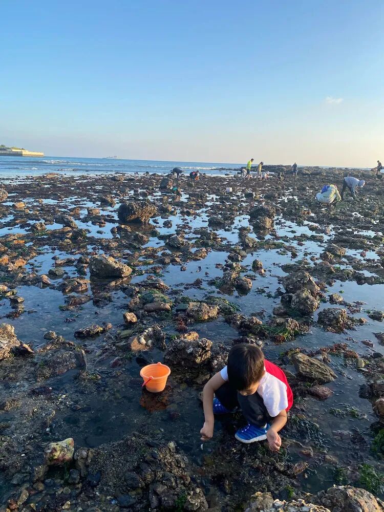 孩子最爱赶海之地,挖贝壳、捉螃蟹、捡海胆、海参,挖青口等。