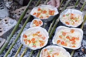 平整后加入茄酱、香肠、芝士碎、蔬菜