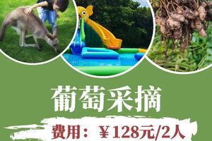 包含:农场半天营位费用、1斤阳光玫瑰葡萄(超出需加收38元/斤)+5株花生,赠送当天2人七彩澳游世界门票+2程电瓶车;