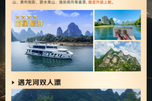 特别安排【定制山水下午茶+定制航拍制作vlog】:在如诗如画的山水间,享受定制下午茶。一边品尝精致茶点、特色茶饮,一边欣赏眼前的山水美景,在宁静惬意的氛围中放松身心,感受桂林山水赋予的独特浪漫,一边品尝特色茶点,一边全方位欣赏漓江美景。期间还有专业人员进行定制航拍,记录美好瞬间,留下独特的漓江记忆。