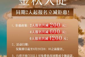 早鸟价:出发前一周以上报名,可优惠100元每位!!