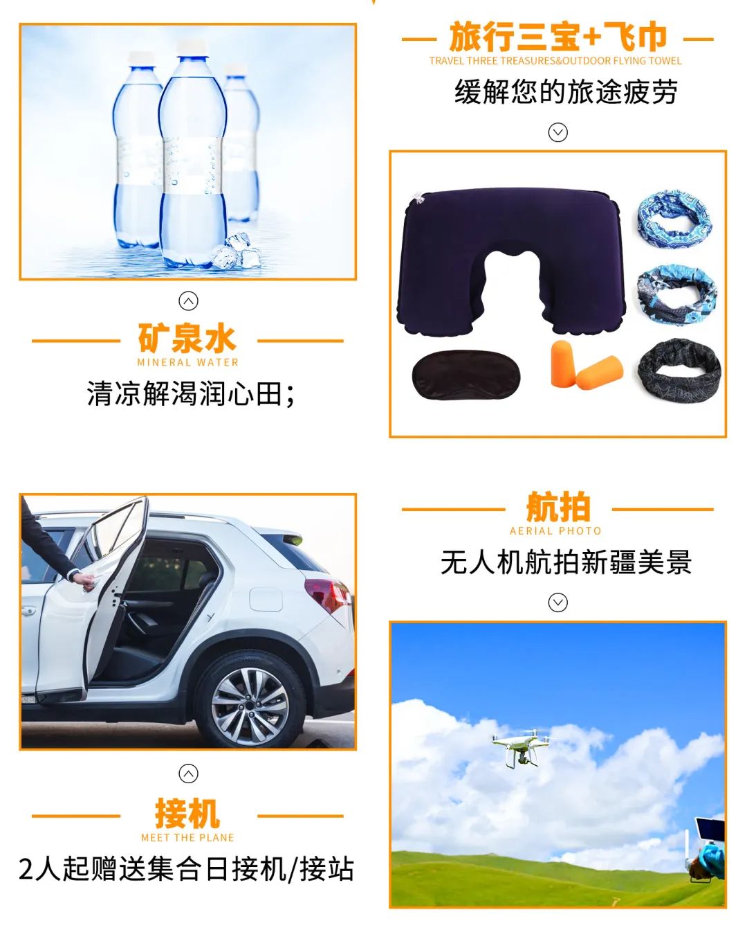 3. 赠送集合日当天免费接机/接站服务(提前抵达者请自行前往酒店)。请提前至少3天告知航班/车次信息,如未告知,视为自动放弃。默认安排拼车(1小时内),如您不想等待,可自行打车或搭乘地铁前往酒店(费用自理)。抵达乌鲁木齐机场/火车站后,请主动联系接机人员确认上车位置,如出现等候的情况,请给予谅解。不含送机及送站服务,送机(站)服务:5座车100元/辆、7座车200元/辆,如需要请提前至少1天告知工作人员。